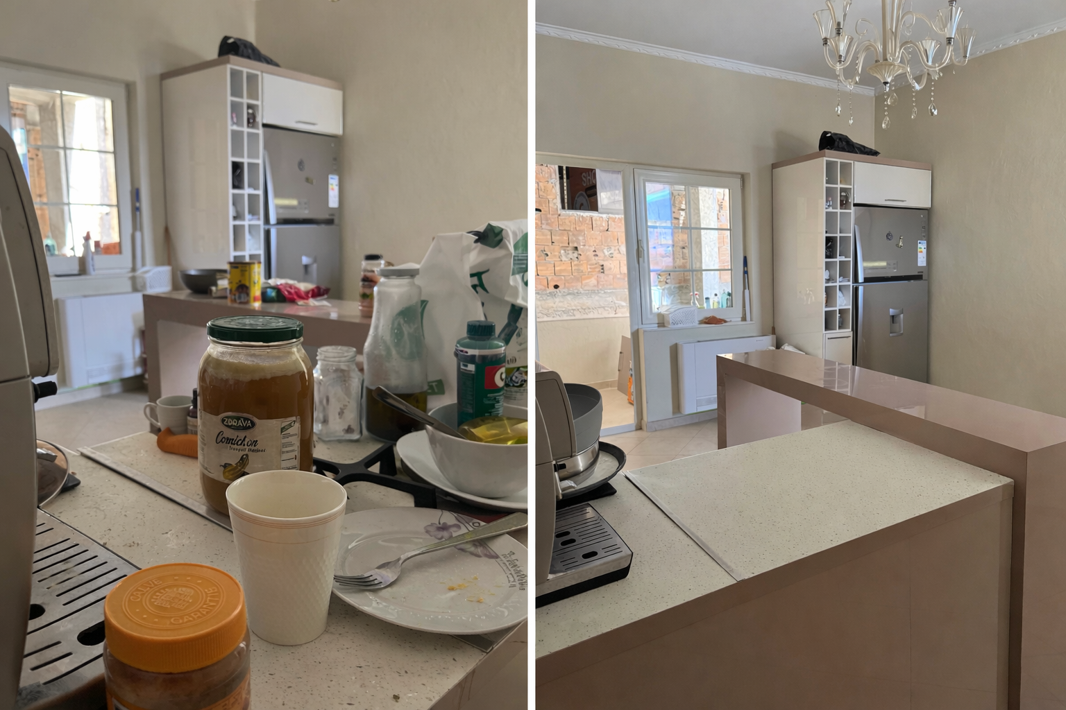 Pastrimi i plotë i kuzhinës dhe banjës, heqja e pluhurit nga të gjitha sipërfaqet, pastrimi i dyshemeve, dyerve dhe bazamenteve, si dhe heqja e papastërtive dhe njollave të forta.